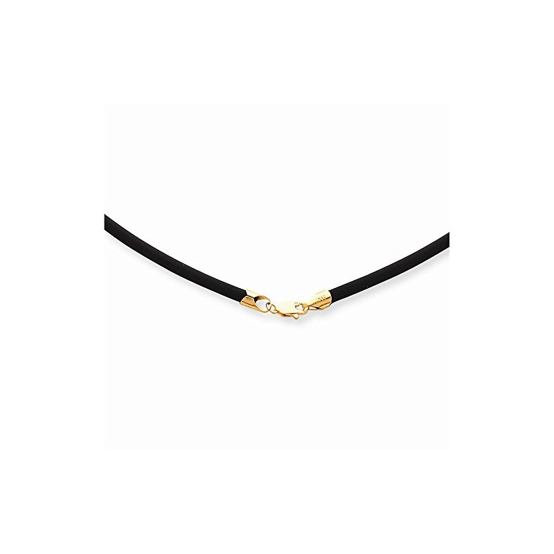 14k 3mm 20in with Yellow Clasp Black Rubber Cord Necklace