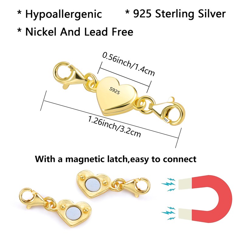 - Package: You will receive 1pcs 14k gold plated sterling silver heart magnetic double lobster clasp and a silver cloth in the package so that you can clean it at any time. Total length is 35mm/ about 1.4 inch(each lobster clasp is 9mm size). Suitable for most diy jewelry making, meeting your jewelry needs.