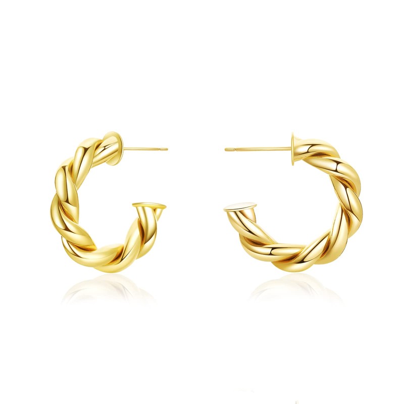 14K Gold Open Hoop Earrings for Women, Chunky Twisted Ropes Post Huggie Hoop Earrings, 25mm, Gold, Rose Gold, Silver, Brass, No Gemstone
