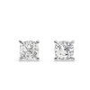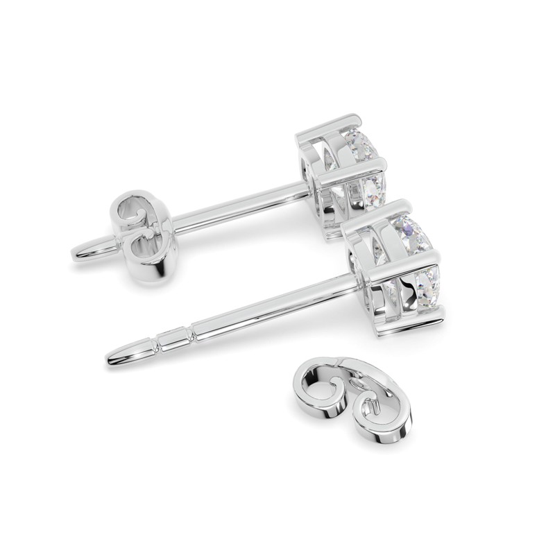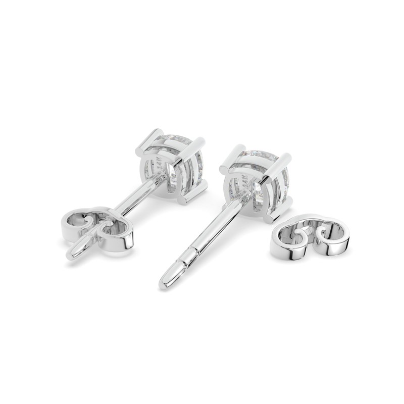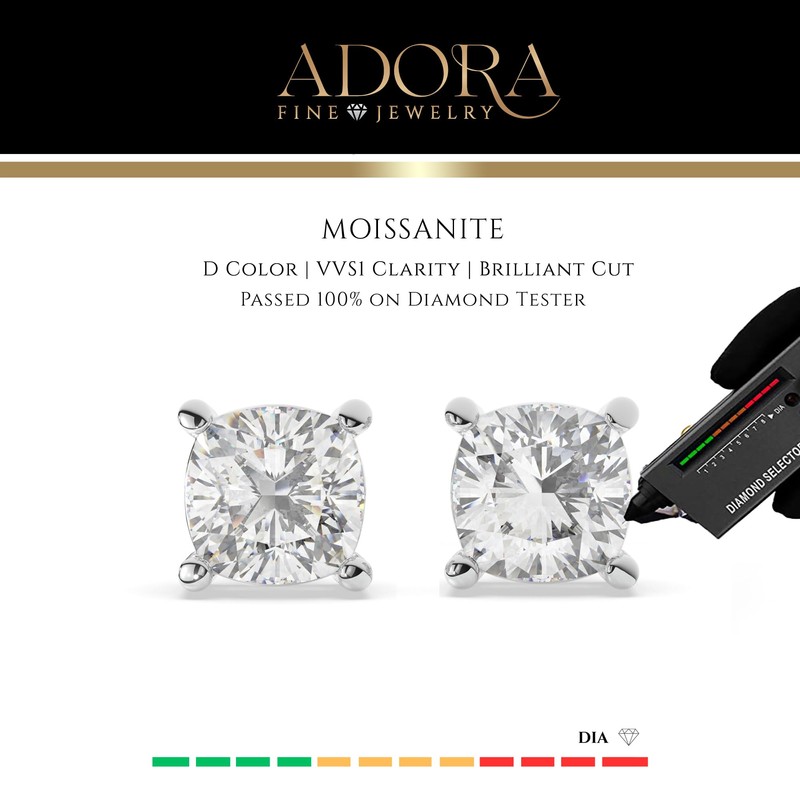 - 💎ABOUT THE JEWELRY: These Cushion Shape Moissanite Solitaire Stud Earrings are a sophisticated addition to any look. Their square shape with cut corners gives them a pillow (cushion) appearance. Crafted in a 4-prong setting in 14K Solid White Gold, each 4.5 x 4.5mm stone has a Diamond Equivalent Weight (DEW) of 0.50 carats. The pair of earrings have a total DEW of 2.0 carats, making them an ideal choice for subtle sparkle and glamour. Made here in the USA.