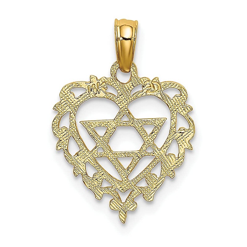 14K Solid Yellow Gold Star of David Jewish Magen Heart Love Necklace Judaica Religious Chain Pendant Israel Charm Only