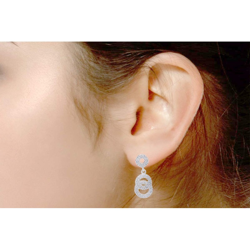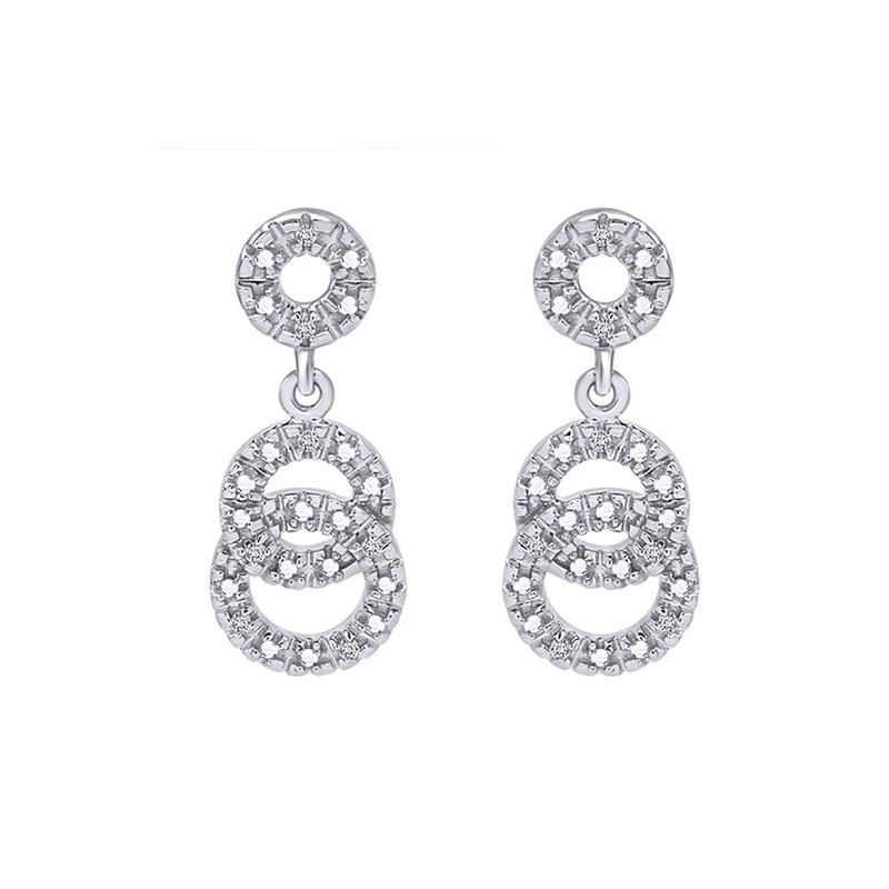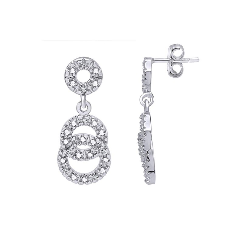 14k White Gold Over Sterling Silver White Natural Diamond Accent Interlocked Drop Earrings For Women (1/20 Cttw, I-J Color, I2-I3 Clarity)