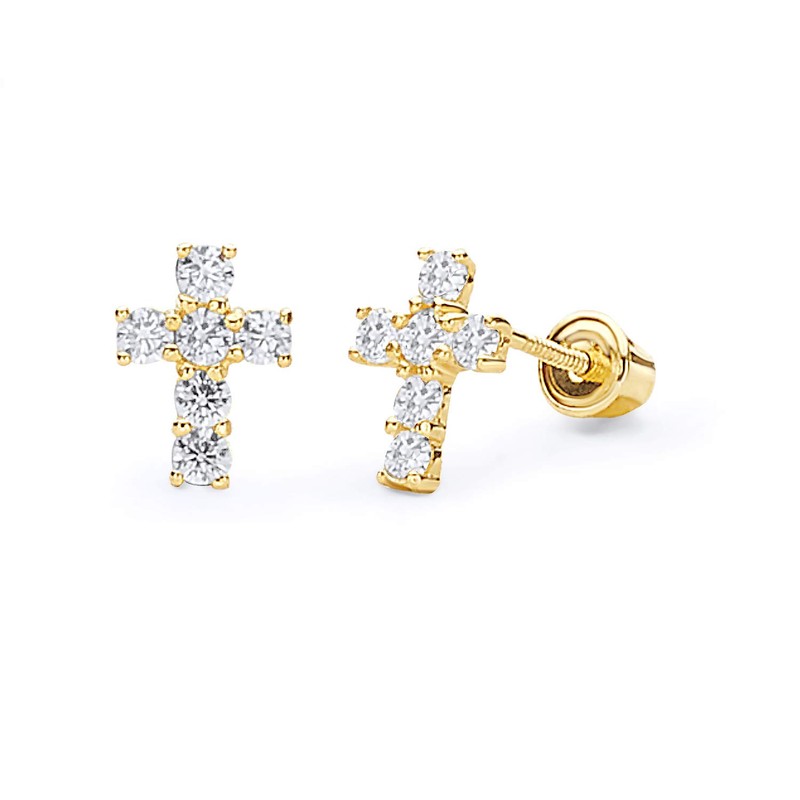 14k Yelllow Gold Cross Stud Earrings with Screw Back