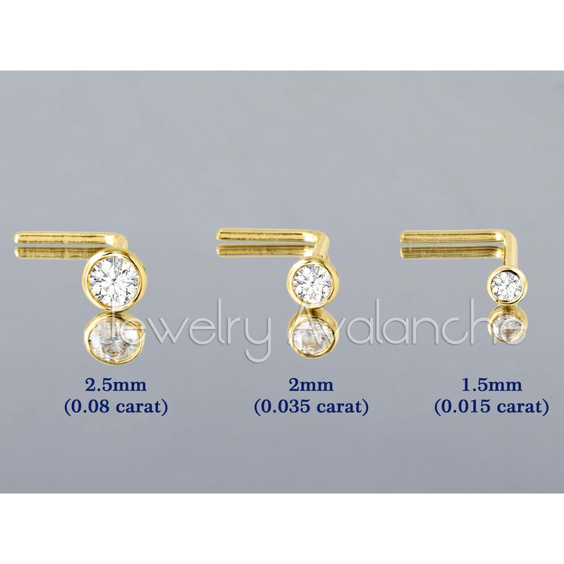 14K Yellow Gold Bezel Set 2.5mm-0.08 ct Diamond L-Shape Nose Stud 22G L-Bend Nose Ring - LSBZRD-YG25WD