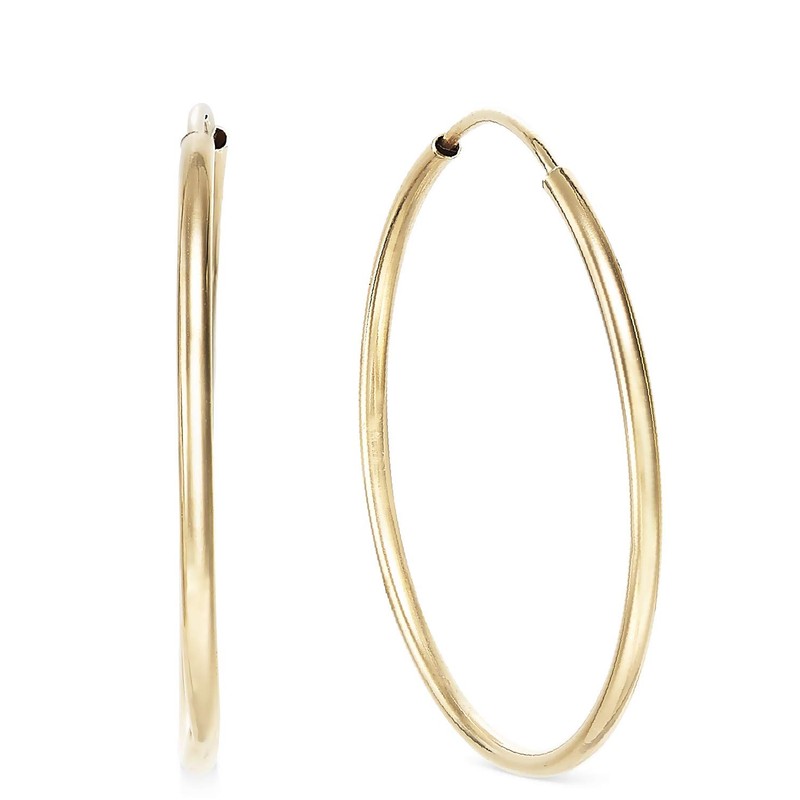 14k Yellow Gold Endless Hoop Earrings Round Flexible Thin Slim Continuous (25mm) 1" Diameter