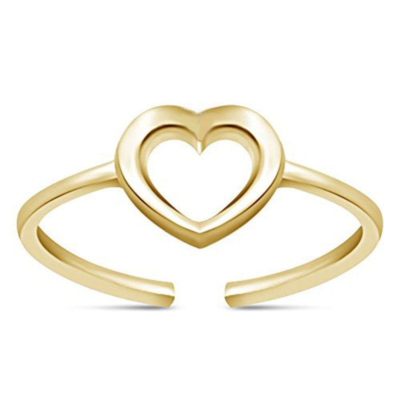 14k Yellow Gold Over Alloy Black Plain Adjustable Heart Toe Ring