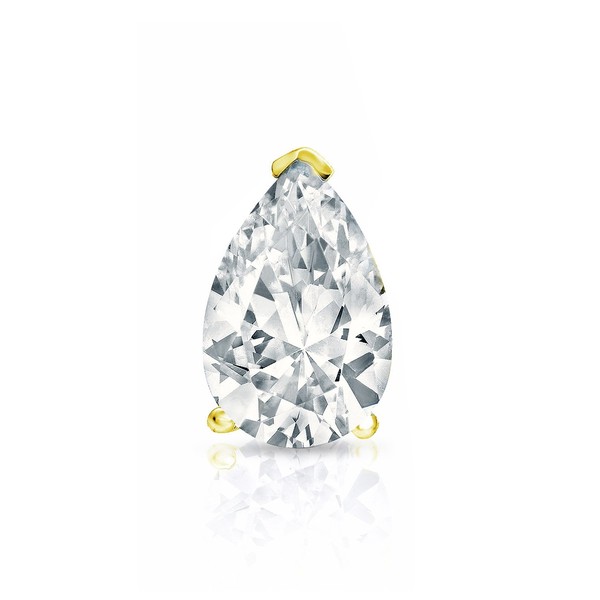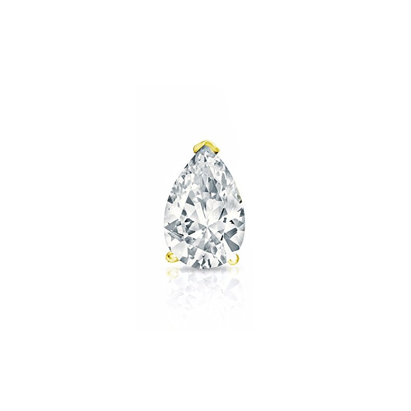 14k Yellow Gold Pear Diamond Simulated Cubic Zirconia SINGLE STUD Earrings V-Prong (3/4ct,Excellent Quality)