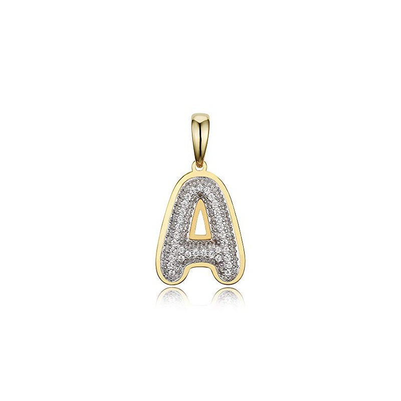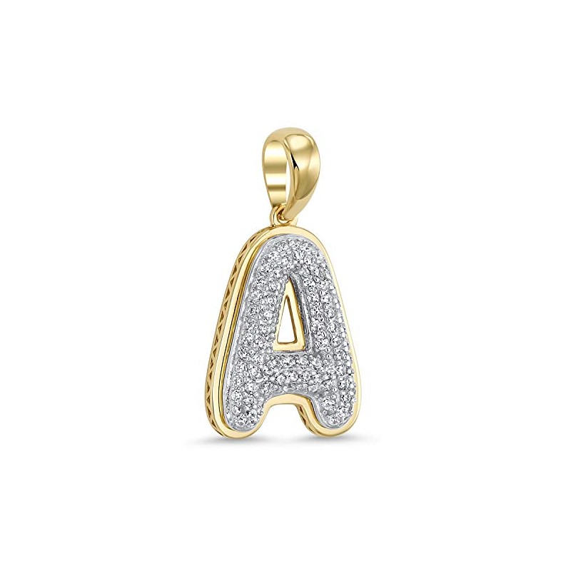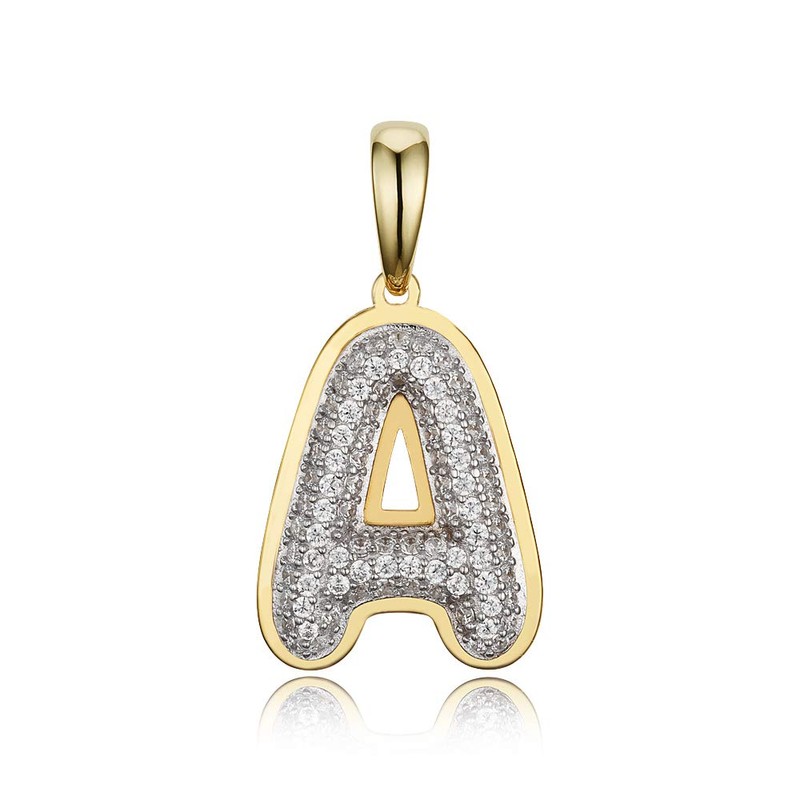 14k Yellow Gold Plated 925 Sterling Silver Cubic Zirconia Bubble Initial Pendant A