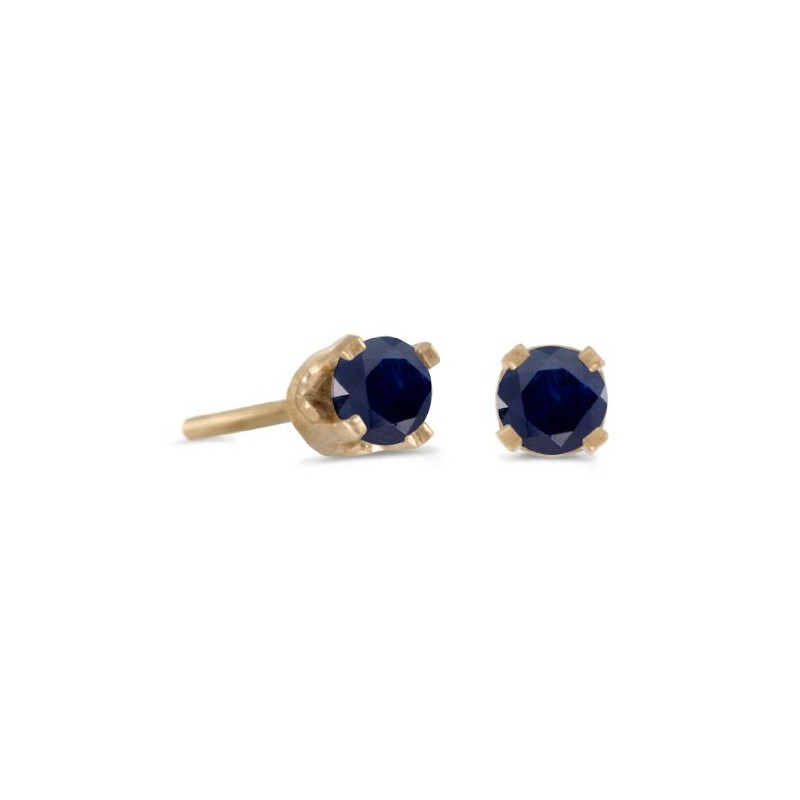 14k Yellow Gold Round Genuine Sapphire Stud Earrings
