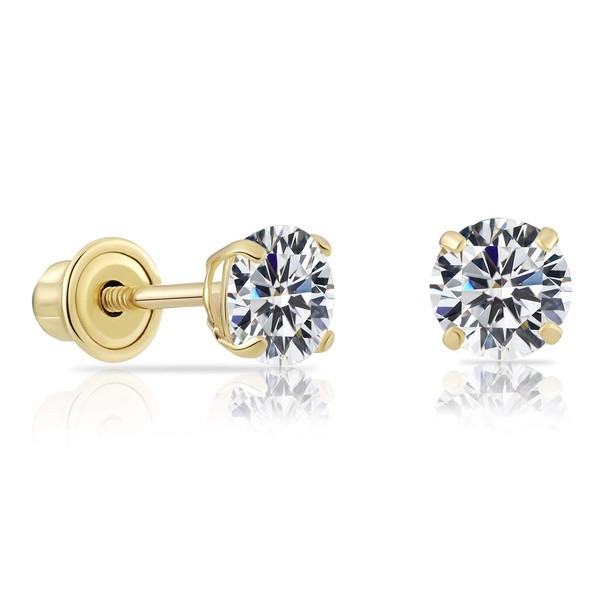 14k Yellow Gold Solitaire Round Cubic Zirconia Stud Earrings in Secure Screw-backs (5mm)…