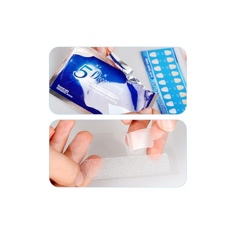 - 5D Blanqueamiento Dental: con una fórmula fuerte y pegajosa, las tiras se pueden adherir a los dientes. Te permite hacer ejercicio, hablar mientras blanqueas tus dientes.