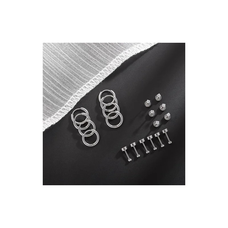 >>>>Hipoalergénico ---------El 14pc Aretes está hecho de acero inoxidable y no se decolora ni se oxida. No contiene níquel, cromo ni otros metales nocivos y no daña la piel.