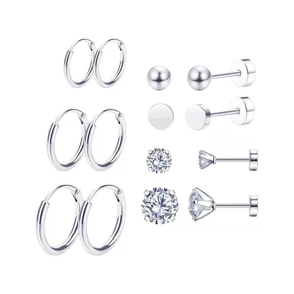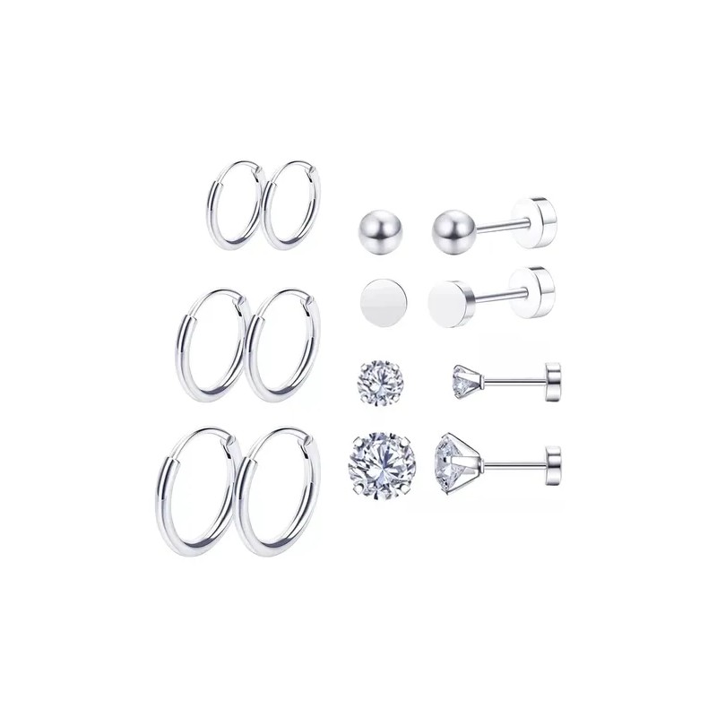 14pc Aretes Mujer Joyería Plata Broquel Acero Inoxidable