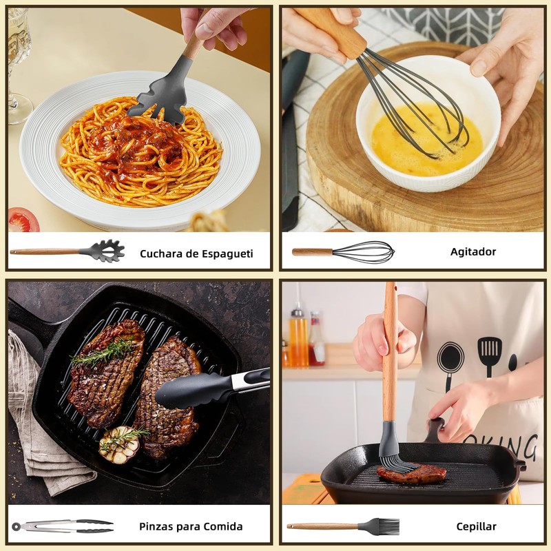 - 【Excelente Regalo】Este juego de utensilios de cocina de silicona es una gran opción para regalos de inauguración de la casa, boda, cumpleaños, Día de la Madre, Navidad y Año Nuevo, perfecto para familiares, amigos y entusiastas de la cocina.