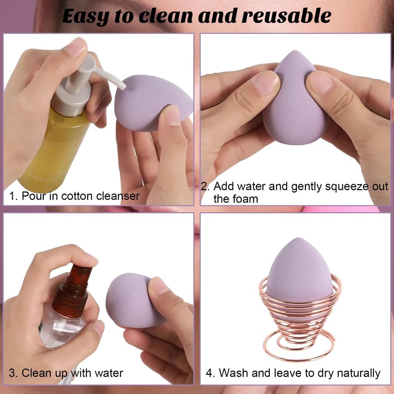 - Easy to Carry -- Our beauty makeup sponge blender comes with a bottle, easy to carry when you travel, you can put it in your backpack, handbag, luggage, without taking too much space so you can use it anytime