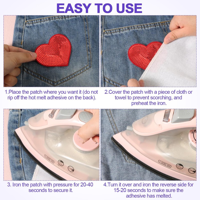 - How to Use: The glitter heart patch has hot melt adhesive on the back, please keep the fabric dry and control the preheat temperature when ironing the patch. If you want the patch to stay in place or on rough fabric, it is better to sew it on for a more secure fit.