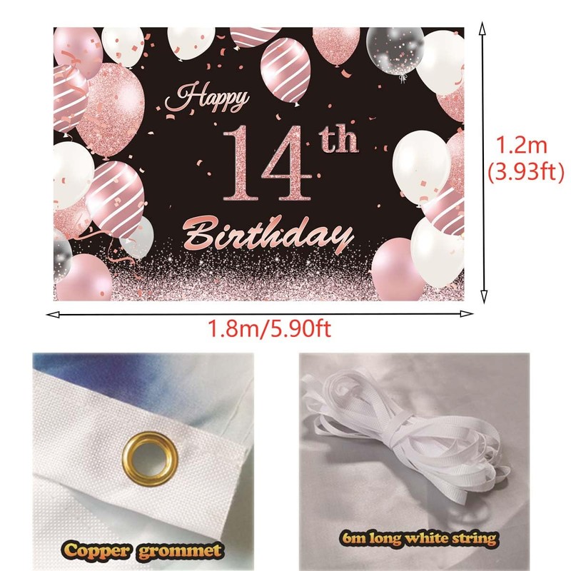 • 【Giant size】the black and rose gold 14th birthday banner is 1.8* 1.2m/6* 4ft, perfect for the 14th birthday party backdrop photography decorations at your party, it added an extra touch to the party.