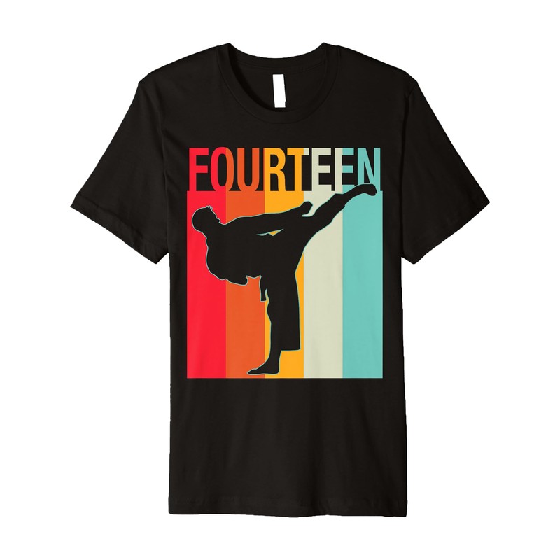 - LONG SLEEVES ADULT SIZES: 14th Birthday Gift Karate Retro Taekwondo Martial Arts Boys birthday shirts. Cool retro gift for your teen Birthday! A great birthday present for Karate and Taekwondo Fans and martial arts coaches or teachers who are turning 14.