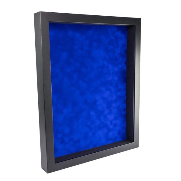 14x22 Shadow Box Frame Black Wood with a 1 3/4" Usable Display Depth Includes a Royal Blue Suede Acid-Free Backing Board, UV Resistant Acrylic, and Hanging Hardware