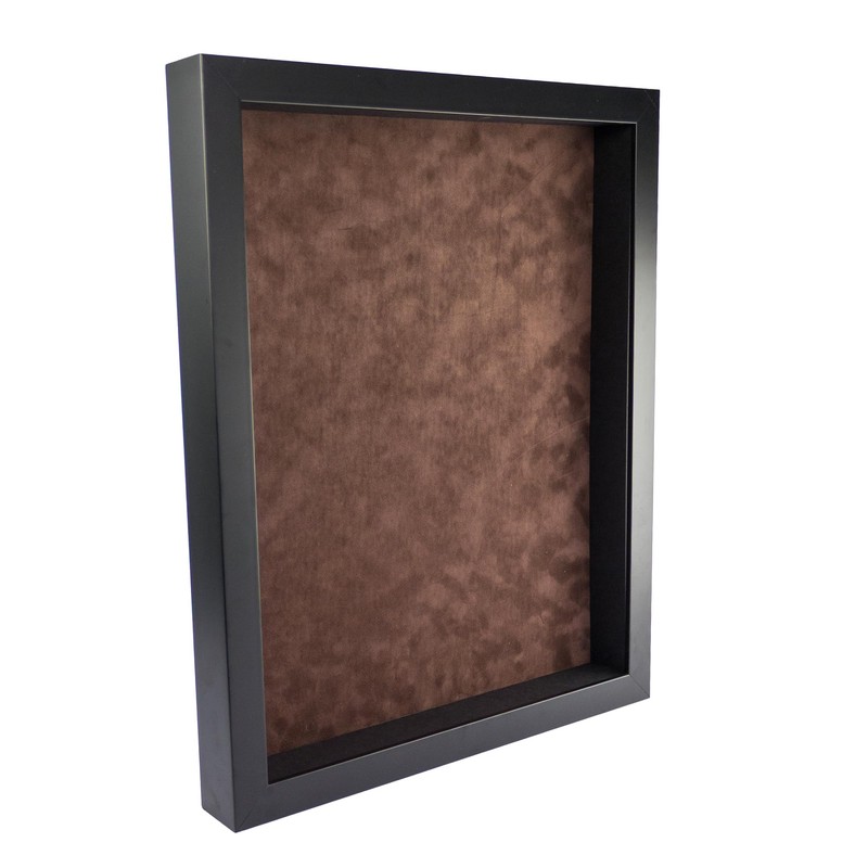 14x28 Shadow Box Frame Black Wood with a 1 3/4" Usable Display Depth Includes a Brown Suede Acid-Free Backing Board, UV Resistant Acrylic, and Hanging Hardware