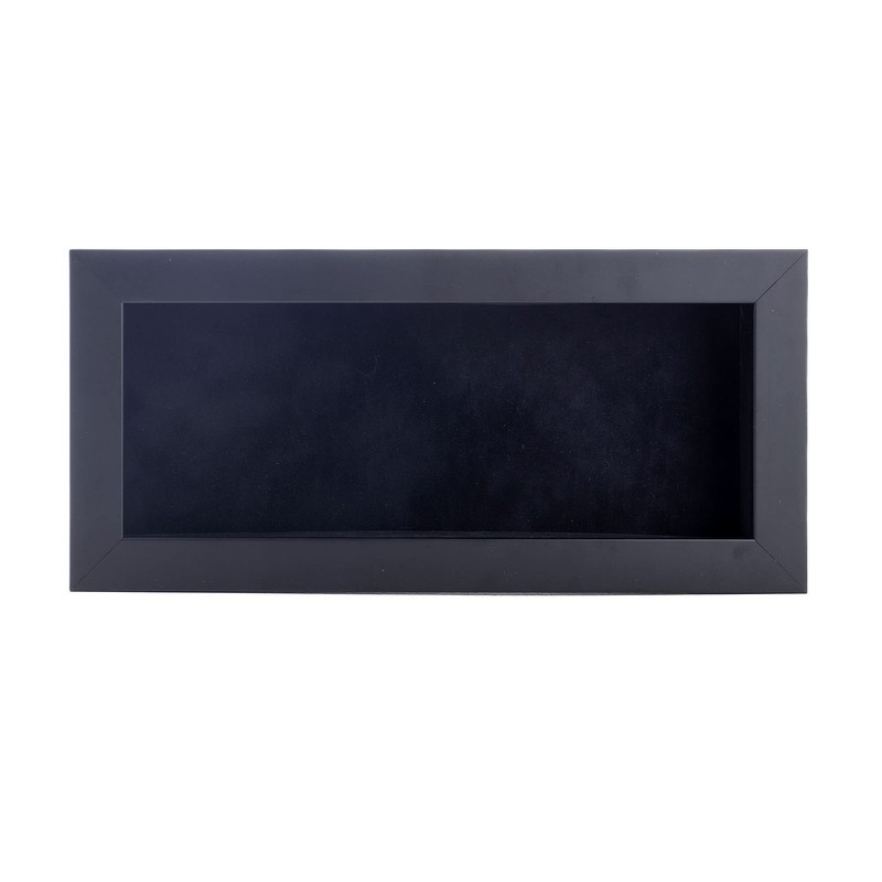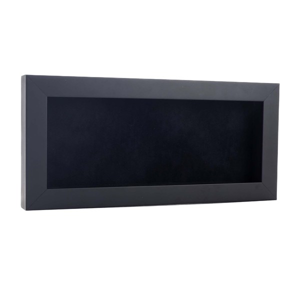 • Black wood shadow box frame with interior size of 14x28 inches by 1 inches deep.