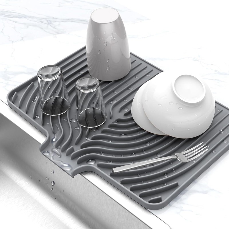 • Multifunctional mat:This versatile silicone mat isn’t just for drying dishes on the counter or by the sink. Use it as a dish rack liner, fridge mat, heat shield, baking mat, cutting board gripper, coffee pot coaster, or hot pot trivet. It’s your go-to solution for endless kitchen needs