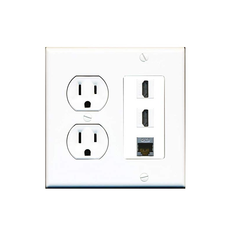 15 Amp Round Power Outlet 2 Port HDMI 1 Cat6 Shielded Ethernet Wall Plate