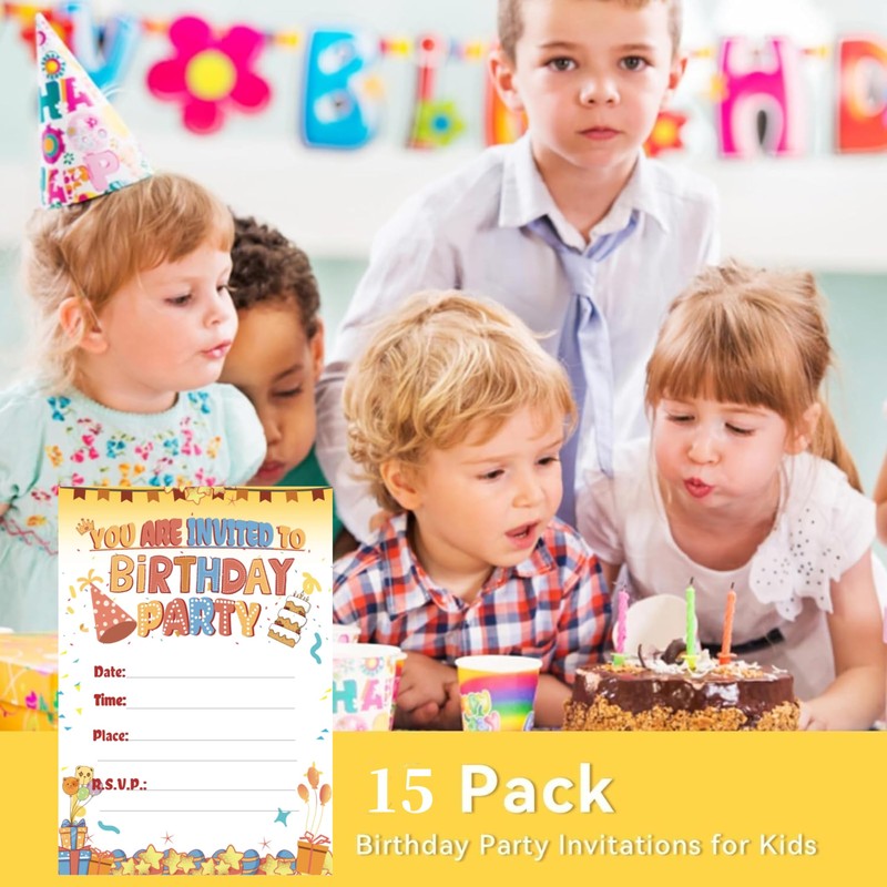15 Birthday and Party Invitation Cards with Envelopes,Uniquely Designed Birthday Cards for Children,Men, Women and Kids (Light yellow)