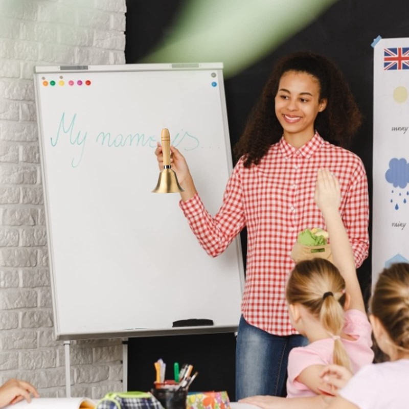 15 cm Multifunctional Hand Bell Loud Solid Hand Call Bell with Solid Wood Handle for School Children Toy Adult Service and Game
