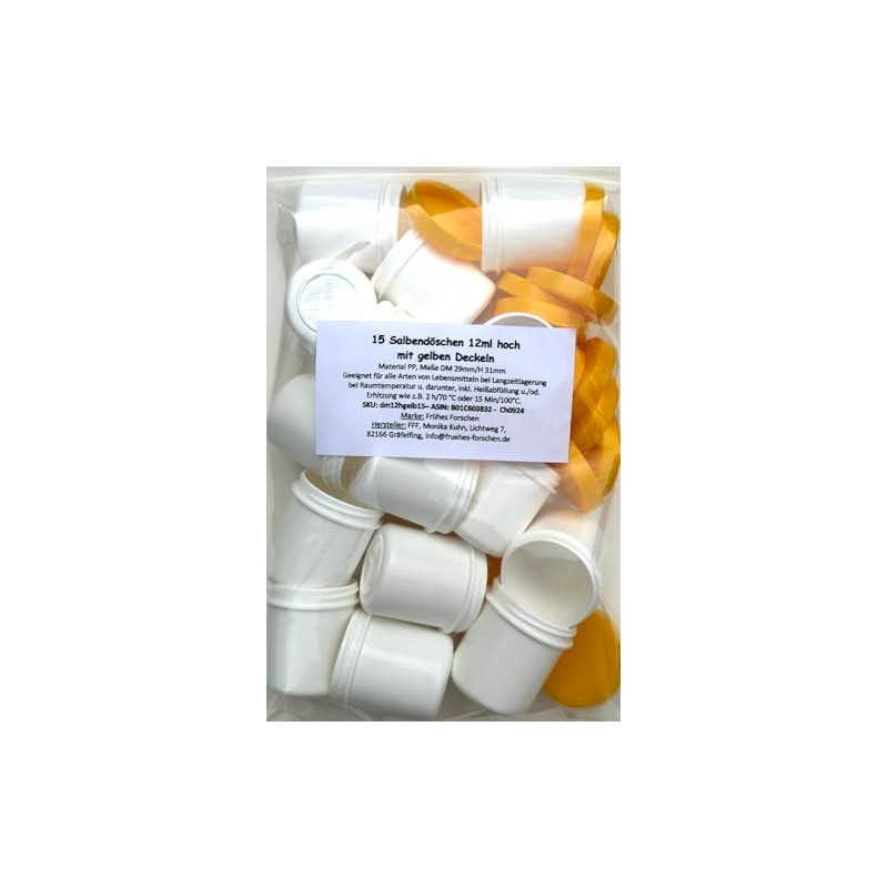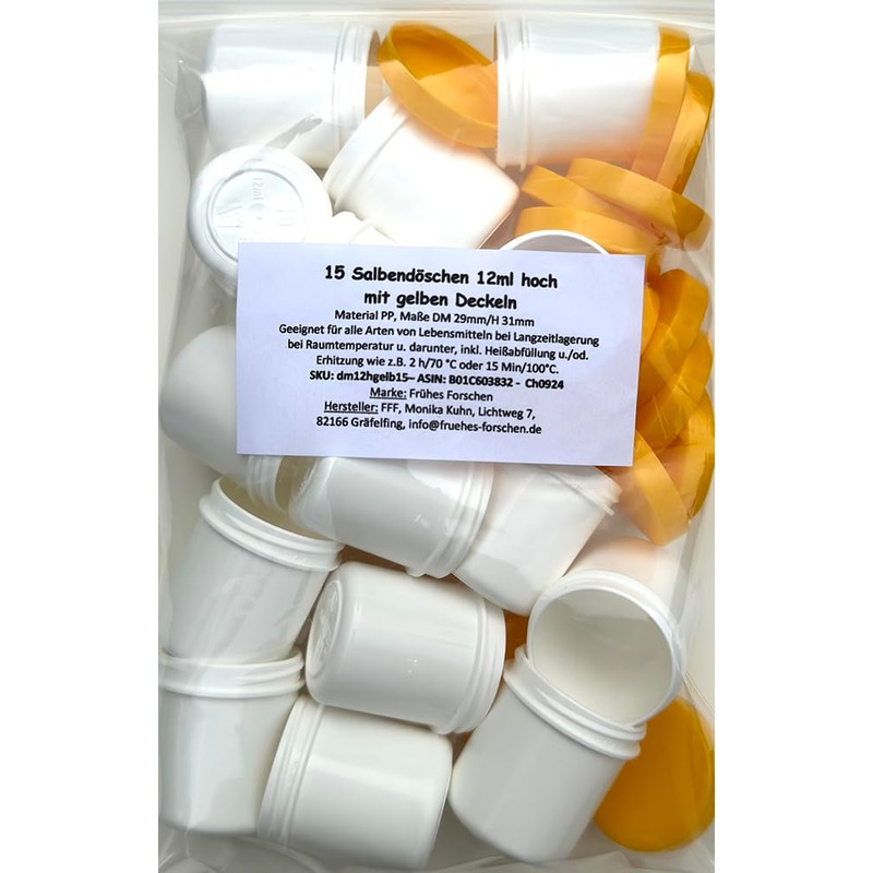 15 Containers Containers Ointment Cream Ointment Kruken High 12ml Capacity with Yellow Lids – Made in Germany