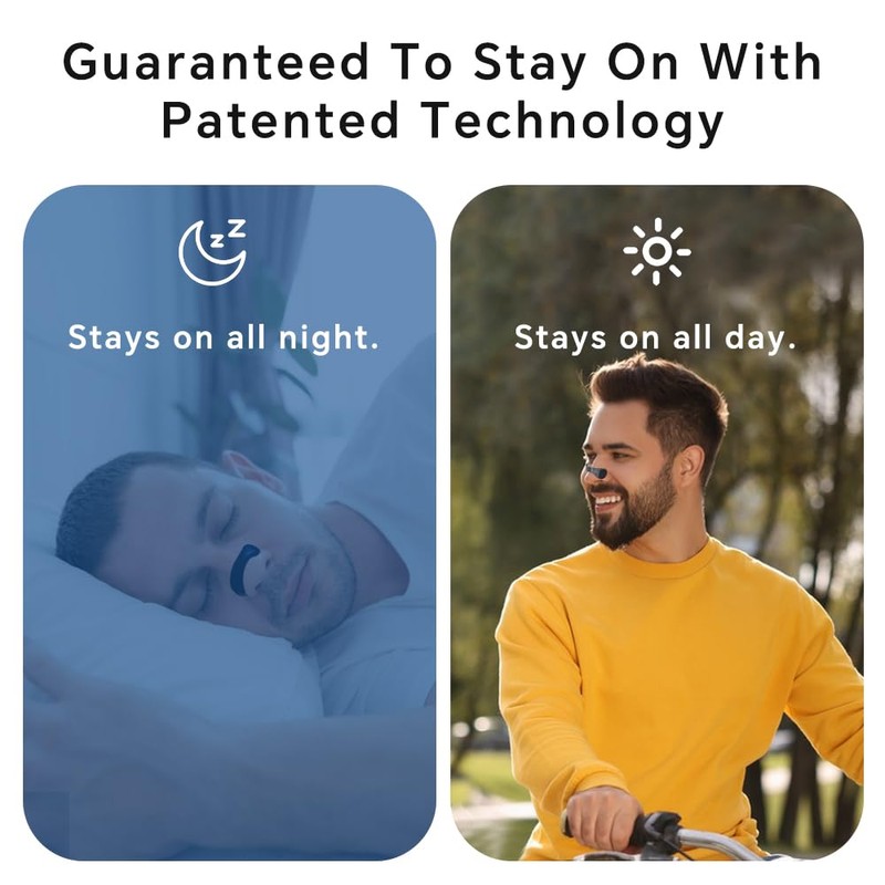 - Efficient and Comfortable-Traditional snoring patches and nasal sprays are not only troublesome to use, but also may cause discomfort. Now, the new external snore relief band provides you with an easier and longer lasting solution! No need to support the bridge of your nose, say goodbye to pressure, and gently fit your face for smoother breathing. It's more comfortable and effective than nasal strips and sprays, so you and your partner can sleep through the night.