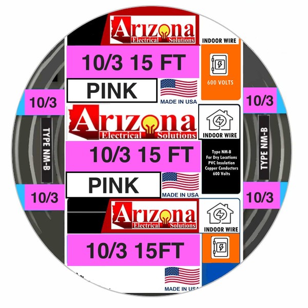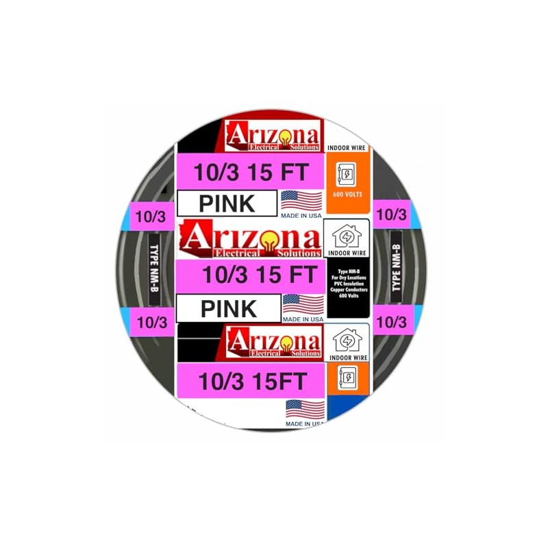 15 Ft 10/3 NM-B Copper Cable, #10 AWG, 3 Conductors with Ground, Pink Jacket