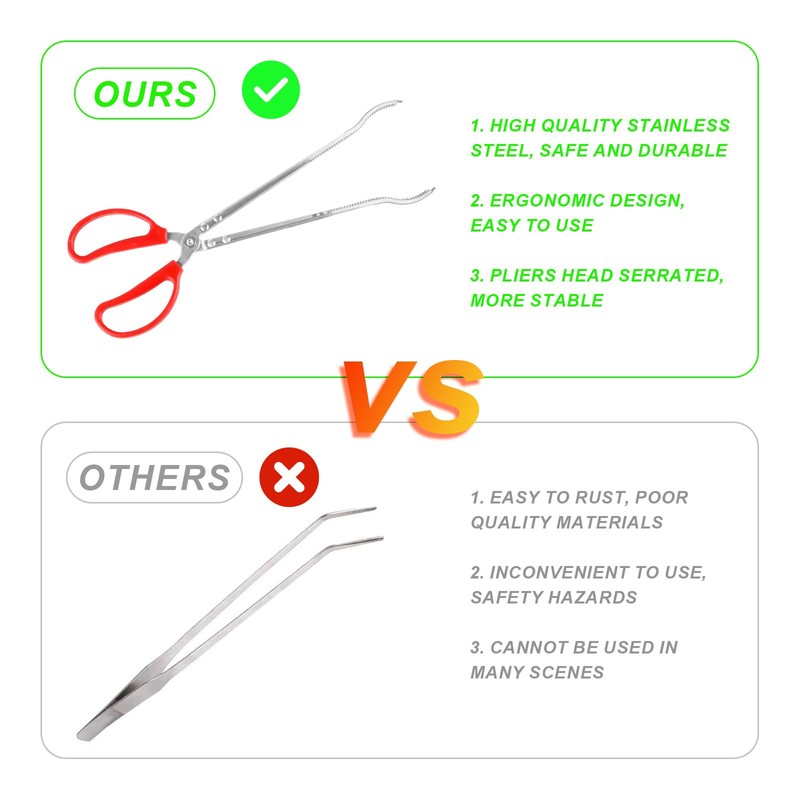 - High-Quality Construction: The feeding tongs are made of durable 410 stainless steel, providing a sturdy and rust-resistant design for long-lasting use. You can trust that the reptile feeding tongs will not cause any damage to your reptile's mouth during feeding