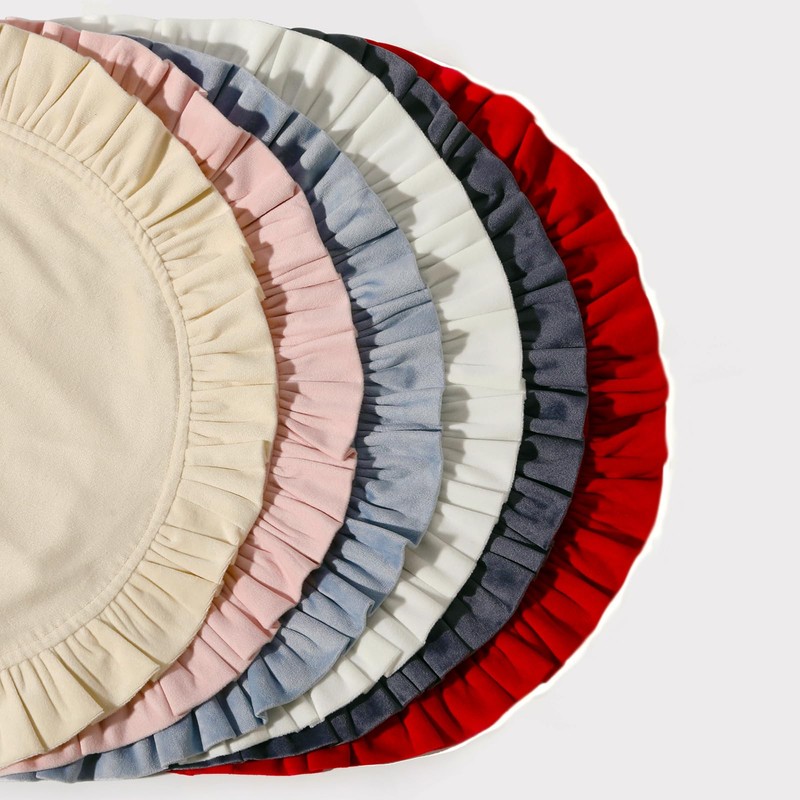 - Elegant pleated edge place mats: The charming and exquisite place mats are a popular series with ruffled edges as the main feature.these elegant placemats have different edges and corners inside, which reflect dazzling light under the light. The placemats fabric with interlaced light and dark looks particularly dazzling. They are essential for elegant interior decoration.