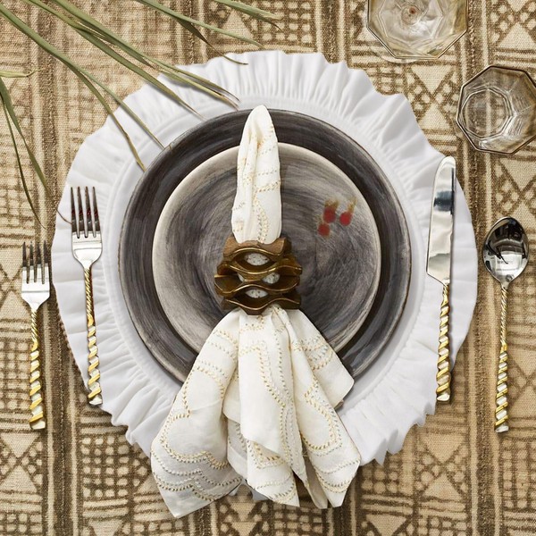 - Elegant pleated edge place mats: The charming and exquisite place mats are a popular series with ruffled edges as the main feature.these elegant placemats have different edges and corners inside, which reflect dazzling light under the light. The placemats fabric with interlaced light and dark looks particularly dazzling. They are essential for elegant interior decoration.