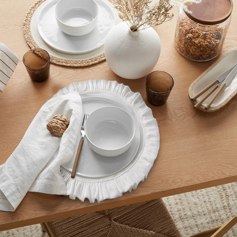 15 Inch Velvet Round Placemat with Ruffle for Dining Table Outdoor Placemats Non-Slip Washable for Gathering, Occasional Decoration and Family Parties Celebrations Set of 4, White