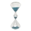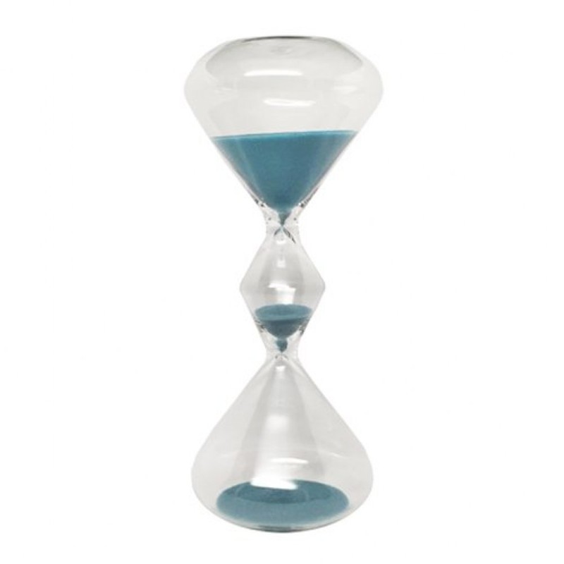 This attractive, freestanding hourglass is made of hand blown glass and features black sand. It is an elegant accessory for your home or workplace. Embrace an ancient approach to measuring time with the Hourglass Sand Timer - 15 Minute Teal Sand, 8 inches. This is not an exact timepiece and is not intended for commercial use. Actual time may vary.