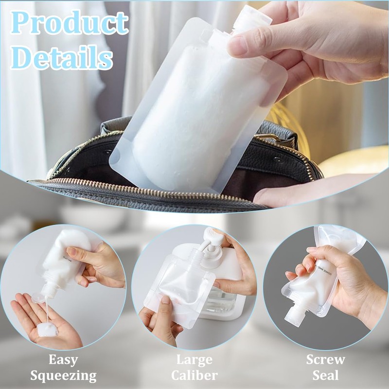 - SPACE SAVING & EASY TO CARRY These liquid bags are lightweight and easy to carry, the flat lid design is easy to open and close, the vertical bottom design is easy to store, and the small size allows for easy storage in cosmetic bags and suitcases without taking up space.
