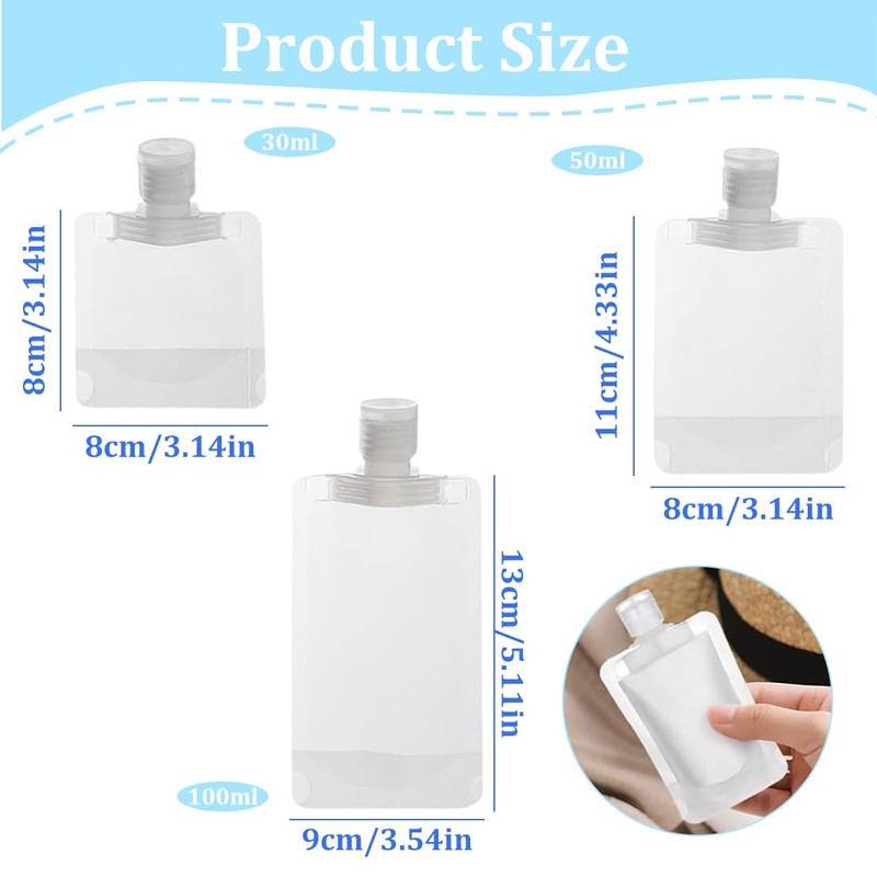 - SIZE & PACKAGING 30ml 50ml This bag is easy to squeeze, lightweight and practical, environmentally friendly and reusable.