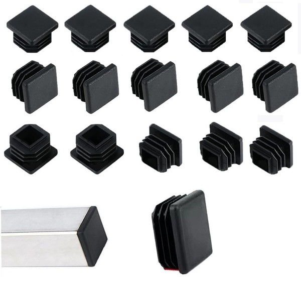 15 Pack Square Plastic Plugs,1" Inch Insert End Caps for Square Tubing Post,Black Chair Leg caps for Metal Tubing, Fence, Glide Insert for Pipe Post, Chairs and Furniture