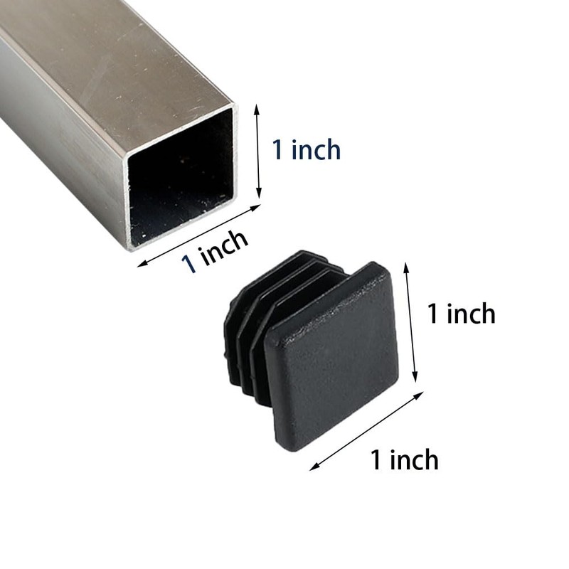 - 【Applicable size】:Black plastic plug size is 1"x1”, it fits 1" outside diameter square tubing; Flexible ridges allows these plugs to hold firm and in place and also allows them to fit most of 1” square tube; please measure your tube size before purchasing