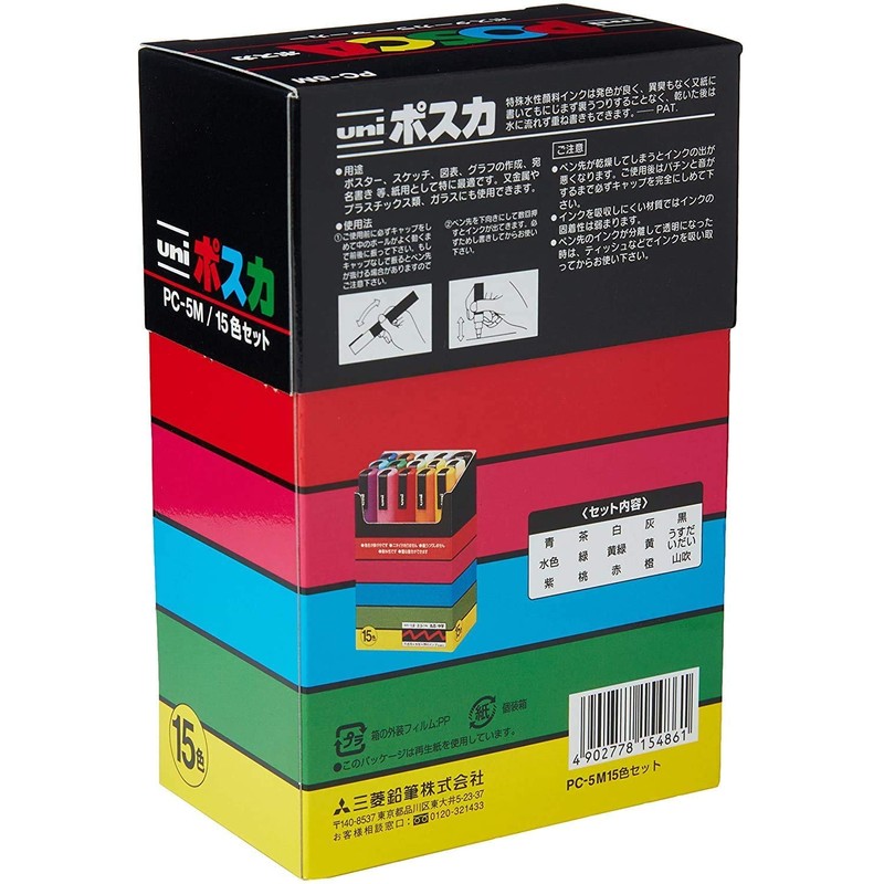 - Mitsubishi Pencil PC5M15C Water Based Pen, Posca, Medium Point, Round Tip, 15 Colors, Japan