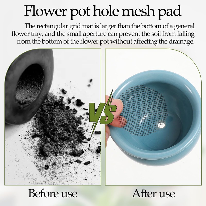 • Effective Soil Retention: our flower pot hole mesh screens are designed with small holes to prevent soil loss while ensuring optimal water drainage. simply place them at the bottom of your pots to keep your plants healthy and your surroundings clean.
