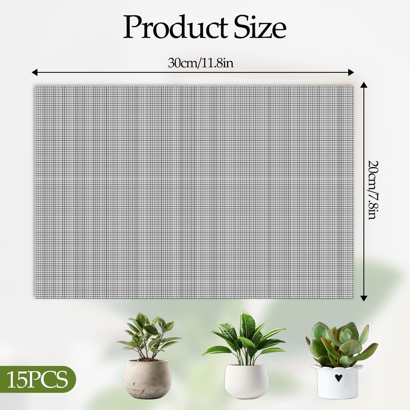 15 PCS Flower Pot Hole Mesh Pad, 11.8x7.8 Inch Plant Drainage Screen Mesh Bonsai Meshs Planter Meshs Drainage Screen BonsaiMesh DIY Drainages Netting Bonsai Bottom Grid Mat Keep Soil from Flowing Away