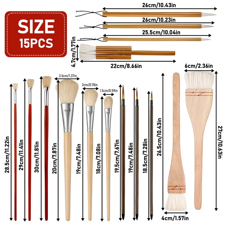 - PREMIUM POTTERY GLAZE BRUSHES SET: Unlock your artistic potential with our 15-piece ceramic brush collection, designed for both professional potters and beginners. This different shapes wool brush tool set includes brushes for glazing, underglazing, and detailed painting work.