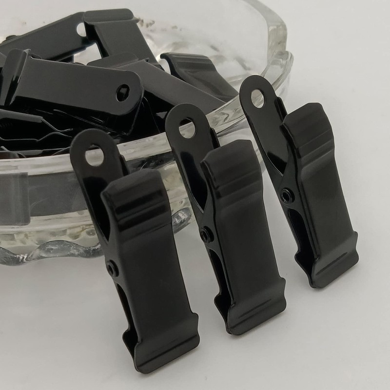 - EXQUISITE DESIGN: Classic black color, the handle part of spring clamps is designed with raised part and anti slip stripes, strong metal spring, flat mouth, inverted design will not hurt yourself or other surfaces