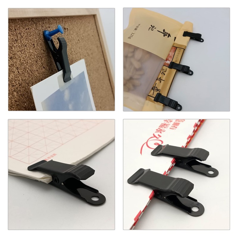 Spring clamp has a small hole with a diameter of 3.5mm at the top, which is convenient for hanging.