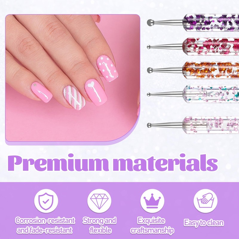 - Packaging Includes: The nail art tools set Includes 5 pcs double-end nail art tool dotting pens, 5 pcs nail art painting brushes and 5 pcs nail liner brushes, which can meet your different needs