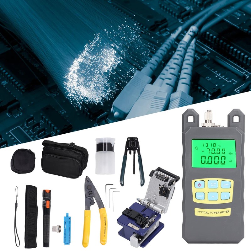 15 Pcs Optical Fiber Tool Kit, 3 in 1 Fixture Optical Fiber Cleaver 2.5mm Interface Optic Fiber Power Meter Fiber Optic Stripper Visual Fault Locator OPM VFL FTTH Optic Kit