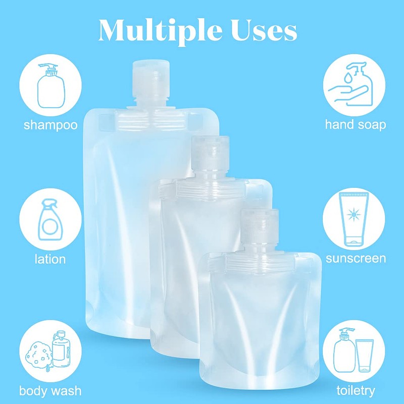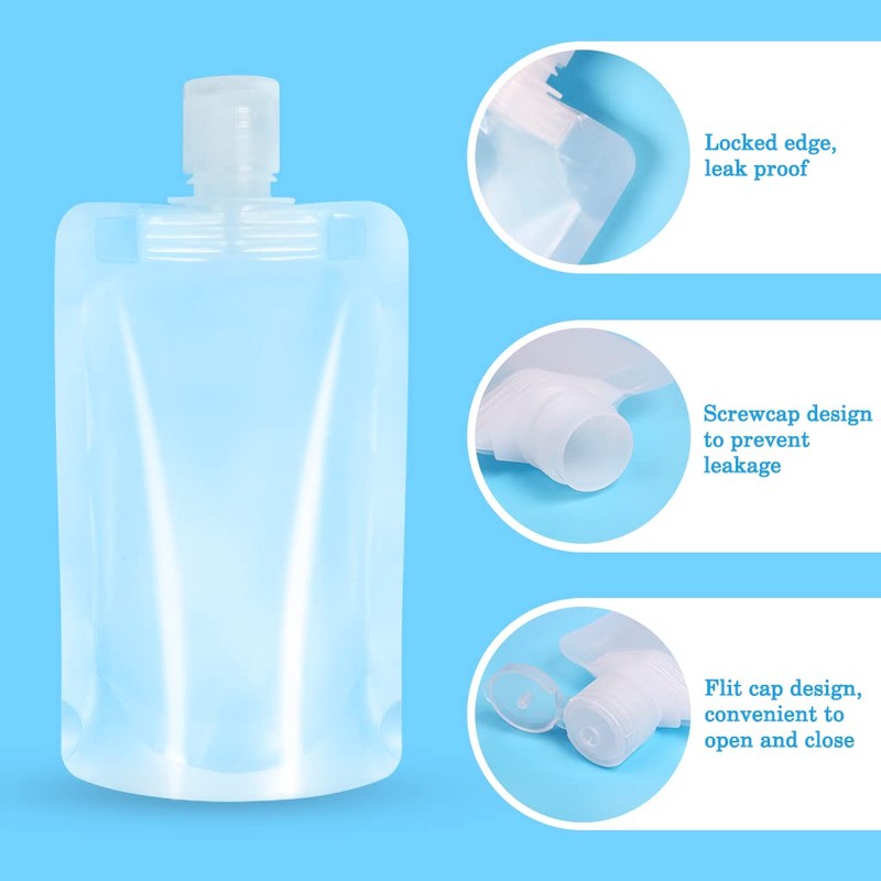 - PRACTICAL DESIGN:The bottom of the pouch can stand upright on the table for easy use and filling. And these pouches adopt flat cap design, which is convenient to open and close. The bodies of these pouches are transparent and clear, you can easy to check and distinguish the liquids inside.